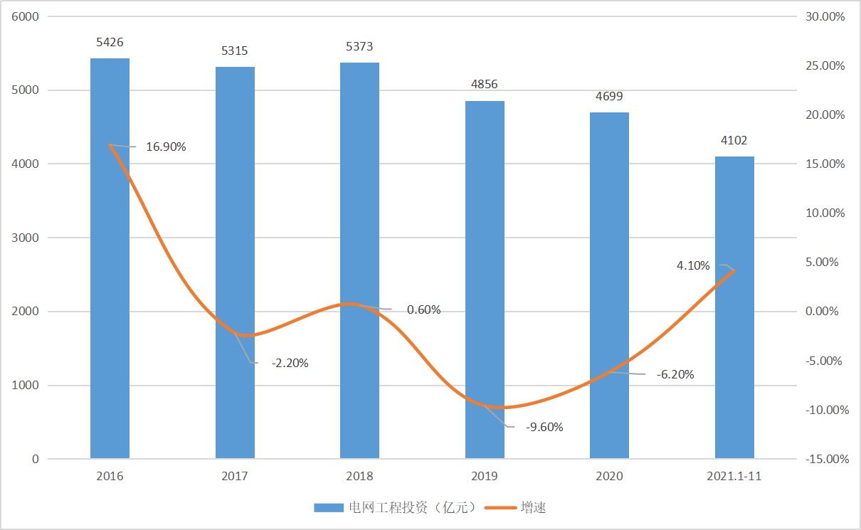 2016-2021年11月電網(wǎng)工程投資走勢圖